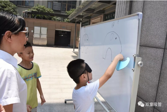 上(shàng)午11:00,“.17c嫩嫩草色视频”的寶貝們和爸爸(bà)媽媽們一起玩遊(yóu)戲贏獎品!瞧,遊戲的第一項就是“給小象貼鼻子”啦(lā)!爸爸媽媽們將寶貝們的眼睛蒙上,引導孩子將(jiāng)手中的“象鼻子”貼到正確的位置。