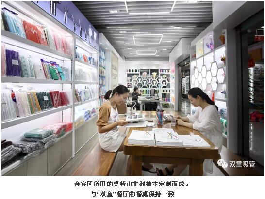 商鋪內共設置了可降(jiàng)解吸管、創新吸管、藝術吸管(guǎn)、超市流通吸管等品類的吸(xī)管產品(pǐn)展示區,以及辦公區、會客區、茶水接待等區域,可謂是分工明確,井然(rán)有序!