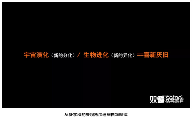 認知創新,需要創業者打(dǎ)開眼界,多去學習那些看似“無用”的知識,運用天文學、生物學、物(wù)理學的宏觀角度,理(lǐ)解在“自然規律(lǜ)”的(de)演繹和進化。