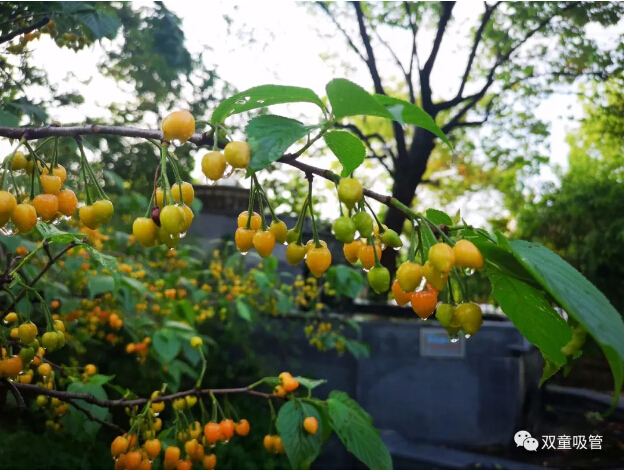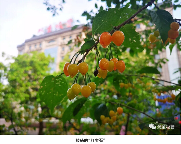 最初成熟的就是櫻桃了(le),由青(qīng)轉黃,由黃轉橙,最(zuì)後變成(chéng)紅色,一團團一簇簇如(rú)紅寶石一般掛在(zài)枝頭,好不(bú)誘(yòu)人!