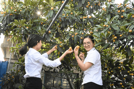 隨後(hòu),黃澄澄的枇杷接檔啦!金燦燦一片掛(guà)在枝頭格外好看(kàn)!吃起來也是香甜可口,還能潤肺生津(jīn),這樣的水果誰不愛呢!
