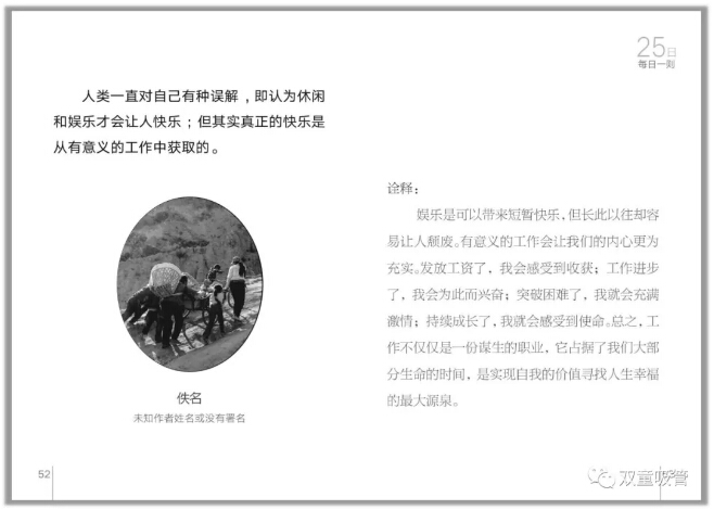 人類(lèi)一直對自己有(yǒu)種誤解, 即認為休閑和娛樂才會讓人快樂;但(dàn)其實真正的快(kuài)樂是從有意義的工作中獲取的。——佚名