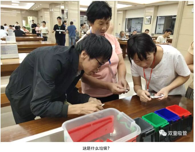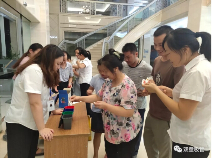 在活動現場,員工們要在有(yǒu)限的時(shí)間內,將“垃圾”卡片投入寫著“廚餘垃圾”、“其他垃圾”、“可回(huí)收垃(lā)圾”、“有害垃圾“的垃圾桶中,這可是(shì)一個不小的挑(tiāo)戰哦!
