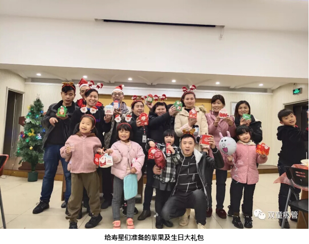 快看,壽星們(men)人手一個平安果(guǒ),頭上還有一頂可愛(ài)的聖誕帽子(zǐ),可愛極了!乍一看,還以為是一群聖誕老人在聚會呢!