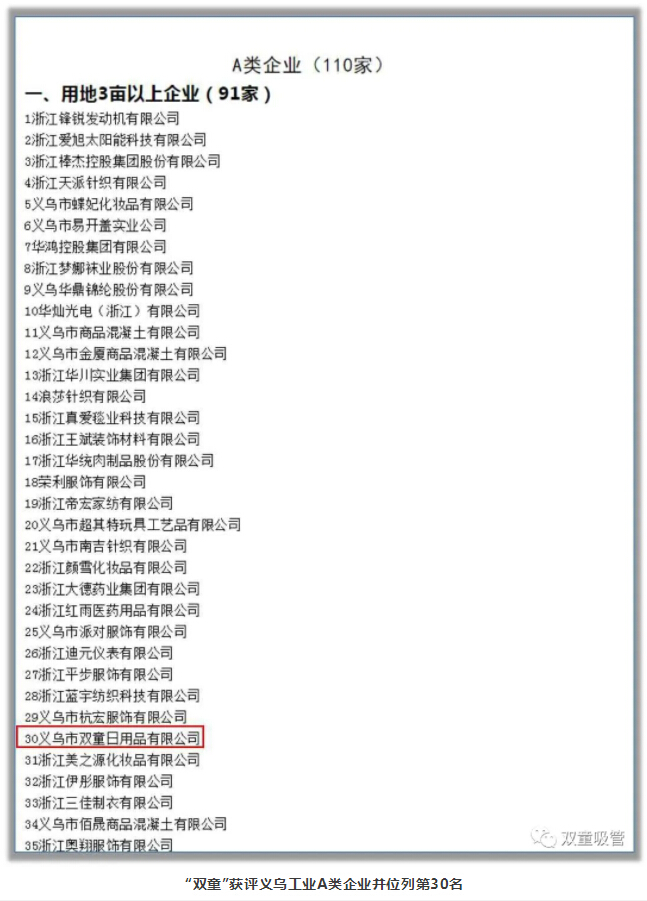 近期,義烏工業企業“畝均論英雄”評價結果已出爐。“.17c嫩嫩草色视频”在義烏2094家工(gōng)業企業中獲評A類企業,並取得(dé)了前所未有的好成績,從2018年的第62名直線晉升到2019年的第30名!