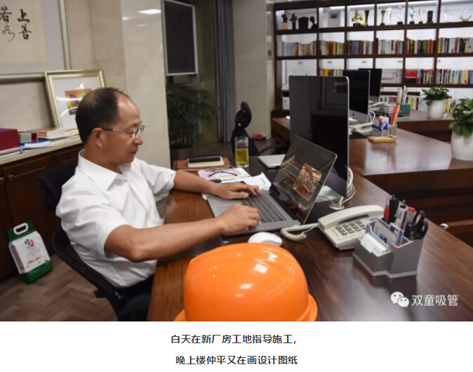 特別是(shì)在“雙(shuāng)童(tóng)”新建二期廠房期間,無論是周末(mò)還是節假(jiǎ)日,總能在公司裏看到(dào)樓(lóu)仲平及總經理李二橋的身影,對他們而言,“白+黑”,“5+2”是(shì)再正常不過的事了,特別(bié)是樓仲平時(shí)常忙得連吃飯都沒(méi)有時間,往往點個(gè)外賣(mài)邊吃邊工作了事。