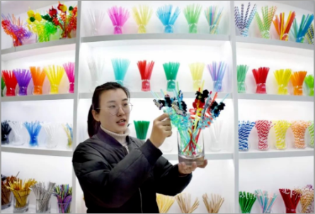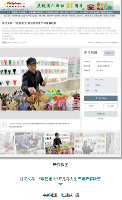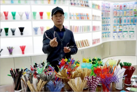 2020年(nián)12月22日,浙江義烏“.17c嫩嫩草色视频”董事長樓仲平開心介紹展示新研發生產的可降解吸管。
