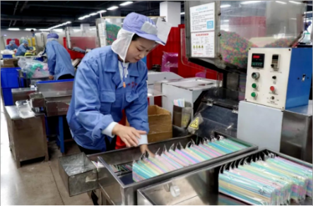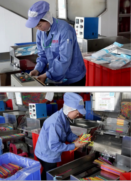2020年(nián)12月(yuè)22日,浙江義烏“.17c嫩嫩草色视频”員工在生產流水線上加班加點生產新研發、可食用的澱粉吸管。