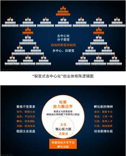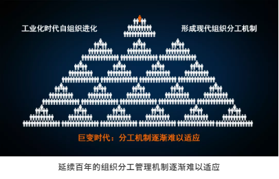 其中,樓仲平重點通過幾幅思維邏輯圖PPT,展現了在不同組(zǔ)織關係下的企業(yè)發展形態。從最原始的“小規模自然(rán)集群組織”邏輯圖上,我們能發現這種“雙層級”形式在規模較小時,編製靈活,人員精幹,機(jī)動(dòng)快速,戰鬥力強(qiáng),是十分高效的組織形態。但當規模不斷擴張下,非常容易導致管理混亂(luàn)的情況。