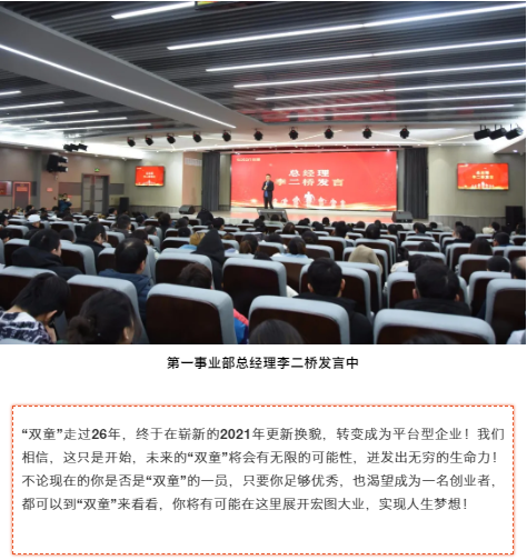 麵(miàn)對所有員工,樓仲平深情(qíng)坦(tǎn)言(yán),成立創業共享平台有可能(néng)是他這一輩(bèi)子(zǐ)要做的最後一件大事,這(zhè)件事情(qíng)的(de)意義(yì)已經完全超越傳統意義上的“掙錢(qián)”,而是通過搭建一個社會(huì)性的創業平(píng)台,賦能於更多(duō)員工,在與(yǔ)員(yuán)工共(gòng)同(tóng)成長的同時(shí),實現“雙(shuāng)童”在巨(jù)變環境下有品質(zhì)、有尊嚴的“活下去(qù)”!