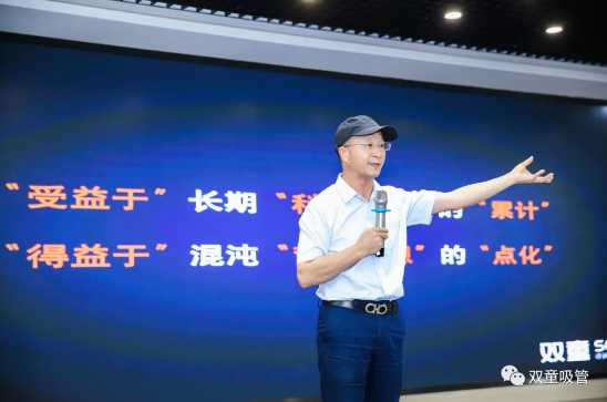 樓(lóu)仲平坦言,在15年(nián)以前,他的“知識”主要來源於書本,完全是碎片化的,無法歸(guī)整到一個體係。15年以後,當他接觸到混沌體係(xì)的課程(chéng),混沌(dùn)將他(tā)的“碎片知識”連接到了一起。樓(lóu)仲平表示自己“受益於(yú)”長期“科(kē)學知識”的“累計”,“得益於”混沌“哲科思維”的(de)“點化。”最後,樓仲平也在現場號召大家繼續學習混沌學園(yuán),讓“混沌知識”在“金(jīn)華大地”薪火相傳!