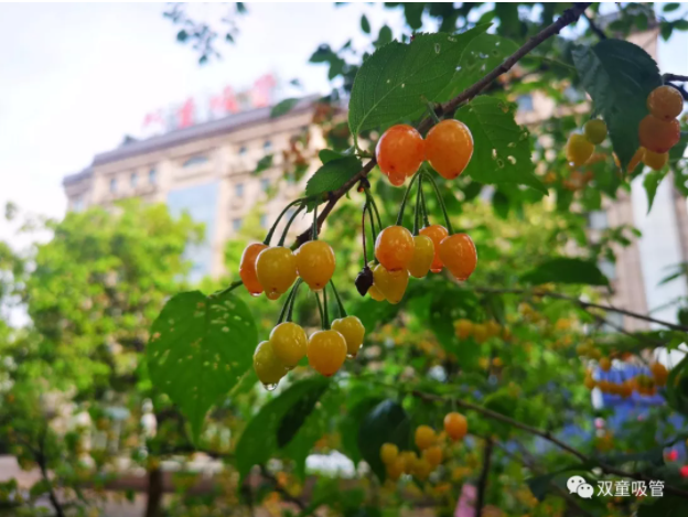四月(yuè),最初成(chéng)熟的就(jiù)是櫻桃了,由青轉黃,由黃轉橙,最(zuì)後變成紅(hóng)色,一團團、一簇簇如紅寶石一般掛在枝頭,酸甜誘人!