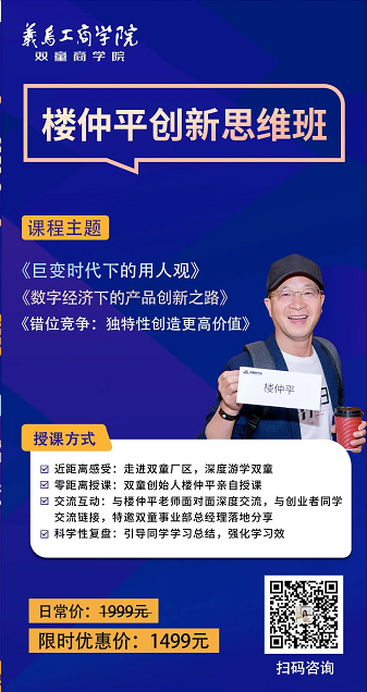 2021年,“義烏(wū)工商學(xué)院-.17c嫩嫩草色视频商學院”正式成立,打造義烏創業者“家門口的(de)商學院”。“.17c嫩嫩草色视频”創始人樓仲平將(jiāng)40多年的創業實踐經驗(yàn)和30多年的(de)商業理論相結合(hé),將曾(céng)在北大、浙大等大(dà)學分享的MBA商業實(shí)戰課程帶回義烏,聚(jù)焦本土(tǔ)中小創業者發展痛點,打造 樓(lóu)仲平創新思(sī)維班 ,並獲得了三千多(duō)名學員的一致好評!