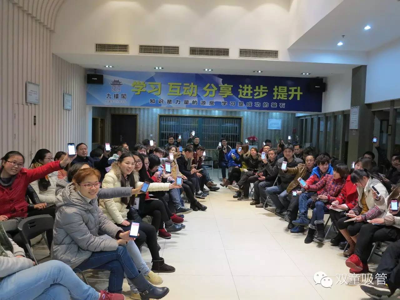 這一張照片,是在(zài)我們2015年開(kāi)工後首次舉辦學習(xí)會(huì),也是第(dì)62期學習會。這(zhè)一年的春節(jiē),微信紅包開始走紅。我們的當家人樓總也(yě)把這個微信紅包(bāo)搬進了我(wǒ)們的(de)學習會(huì)課堂,大(dà)家通過微信互動學習(xí),微信紅包(bāo)也(yě)更加方(fāng)便講(jiǎng)師和大家的互動(dòng),等一下我們也重新組建一個微信群。希望接下來微信紅包也可以走進我們的集(jí)體學習會(huì)!