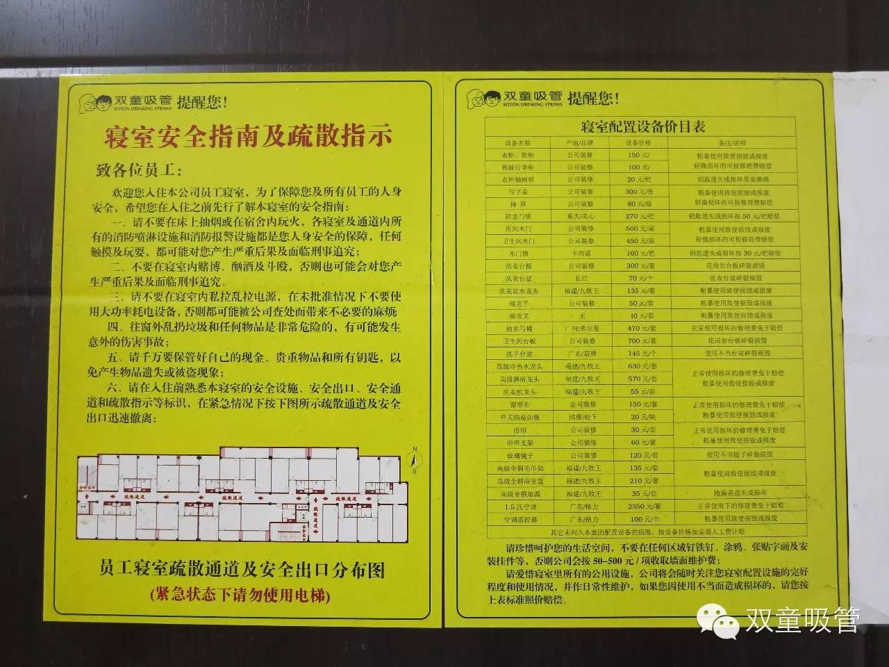 寢(qǐn)室(shì)安全指南及疏散指示(shì)和寢室配置設備價目表