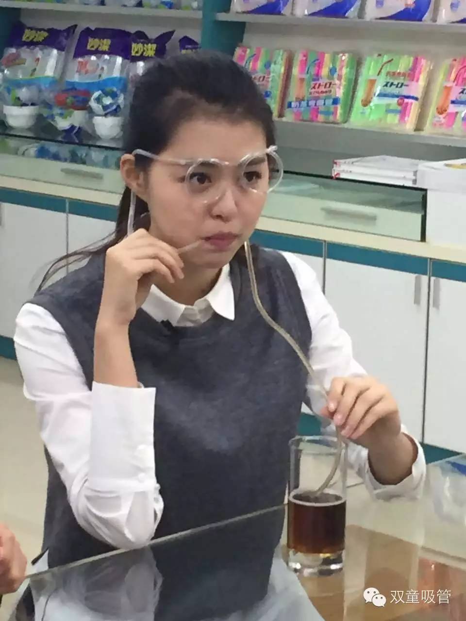 當家人(rén)樓總引導主持人(rén)體驗雙(shuāng)童的”眼鏡吸管“