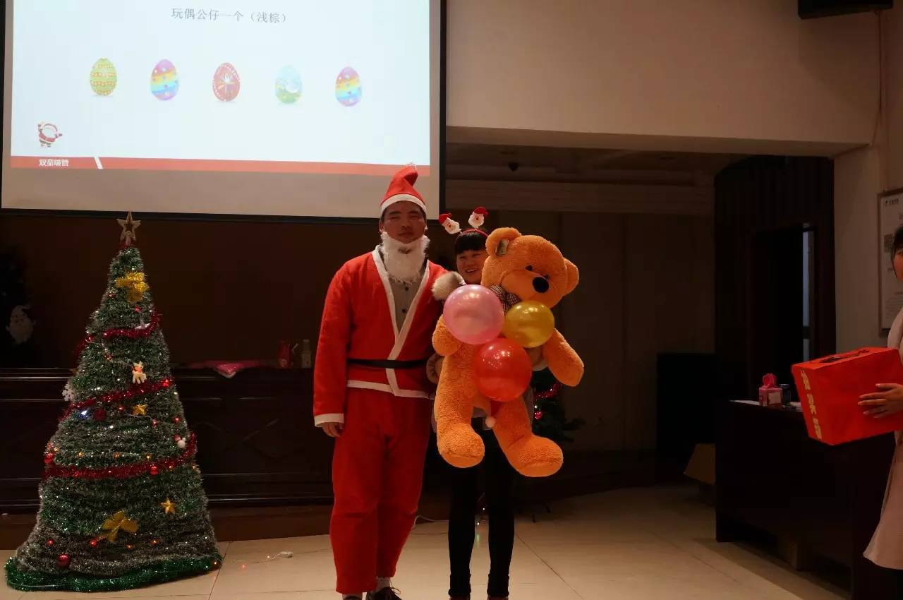 而最最激動(dòng)人心的,莫過於我們(men)的抽獎環節!隻要被抽中名字的觀眾,都可以上台“砸彩蛋”,彩蛋對應的獎品各式各樣(yàng),有大有小,具體就要看你的(de)運(yùn)氣了哦!快看,有位女(nǚ)員工獲得了我們的名牌護膚品套裝(zhuāng), 真是(shì)讓吸管妞羨慕嫉妒恨(hèn)!而這(zhè)位(wèi)幸(xìng)福的媽咪則是獲得了我們的(de)小熊娃娃玩偶,讓她開(kāi)心(xīn)地尖(jiān)叫起來,哈哈,給孩子的聖誕禮物就有啦!