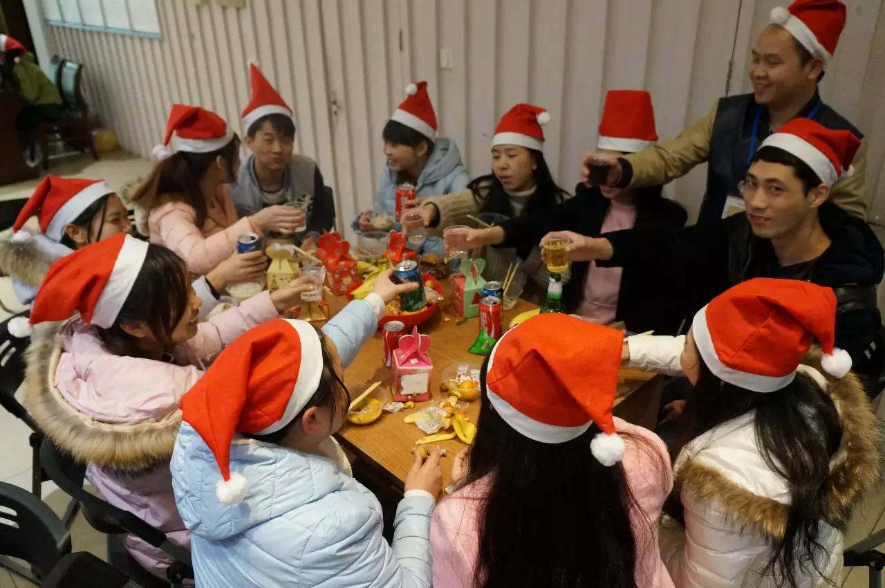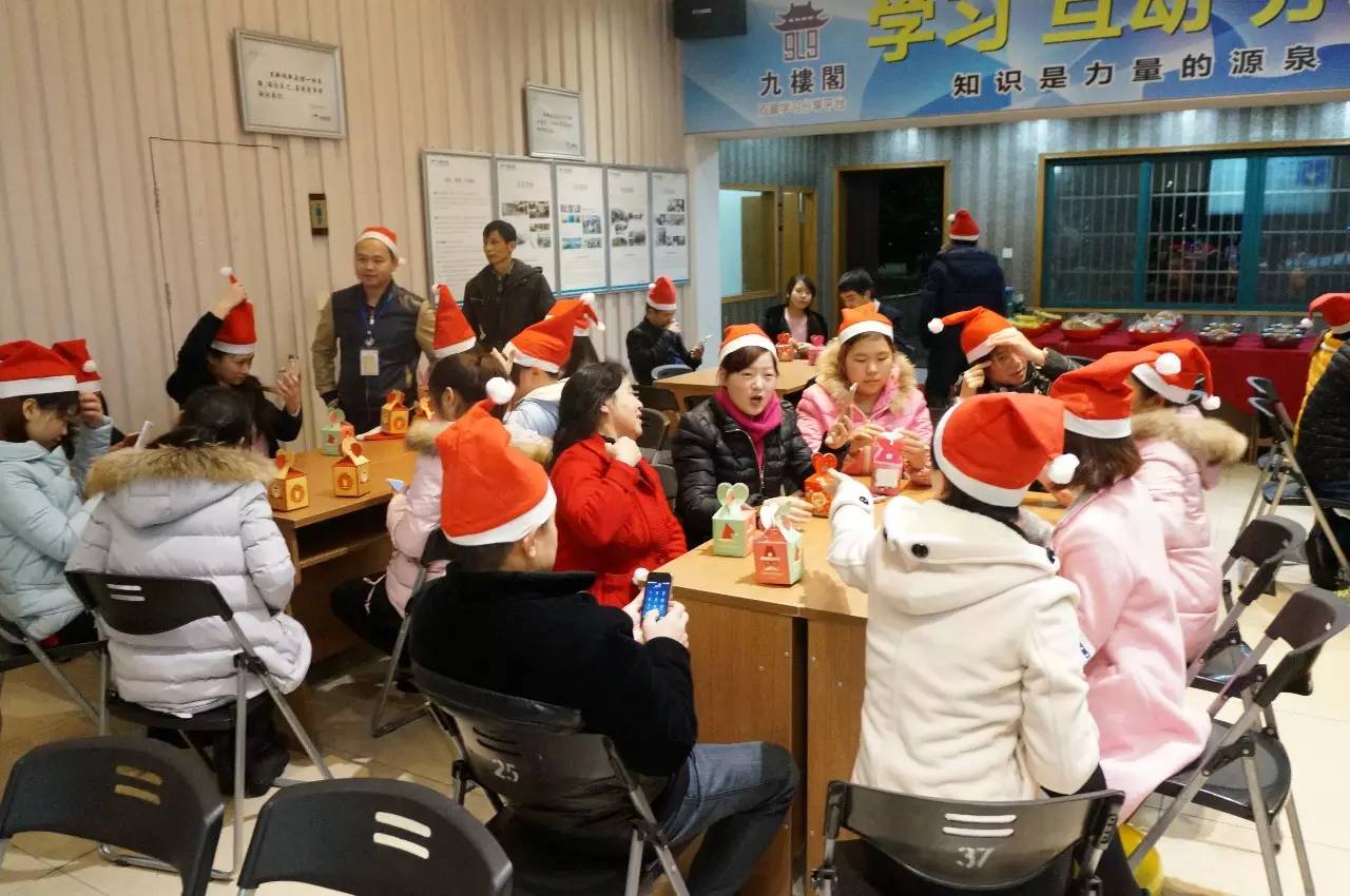 為了慶祝聖(shèng)誕(dàn)節的到(dào)來,我們特地舉辦了這場節日氛圍濃厚的聖誕party哦!快看,每個人頭上都有一頂可愛的聖誕帽子,乍一看,還以為是(shì)一群聖誕老人在聚餐呢!九樓閣的熱鬧(nào)也吸引了不少孩子們加入,看到(dào)我們的“聖(shèng)誕老人”更是纏著他(tā)不(bú)肯(kěn)放!
