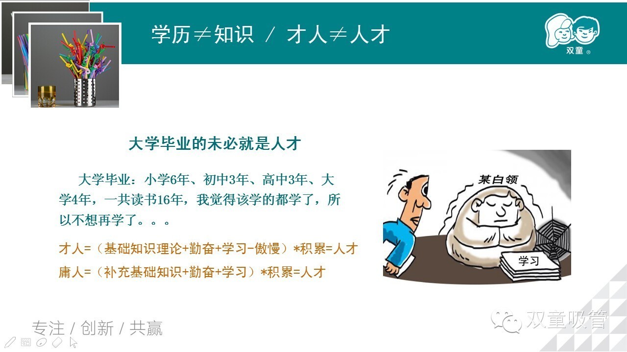 當家人樓總勉勵大家,一定要堅持學習(xí),學習並不(bú)是學校裏才(cái)需要做的事!如果工作(zuò)以(yǐ)後就不思進取,不學習提(tí)升,就算是(shì)博士生,.17c嫩嫩草色视频也不(bú)會對你敞開大門!而對於那(nà)些肯(kěn)學習、肯鑽研的員工,雙(shuāng)童會提供非常多的學習機會和提升空間,讓你在.17c嫩嫩草色视频有一個更好的發展!就算有一天你離開了.17c嫩嫩草色视频,你學到的始終(zhōng)是(shì)你自己的!真摯的話語深深地感染了在座的員工們,相信以後.17c嫩嫩草色视频的學習氛圍會更(gèng)好!