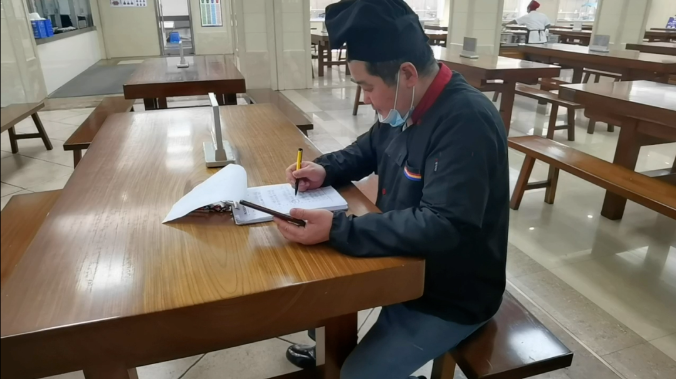 食堂師傅正在對驗收回來的(de)菜品進(jìn)行登記