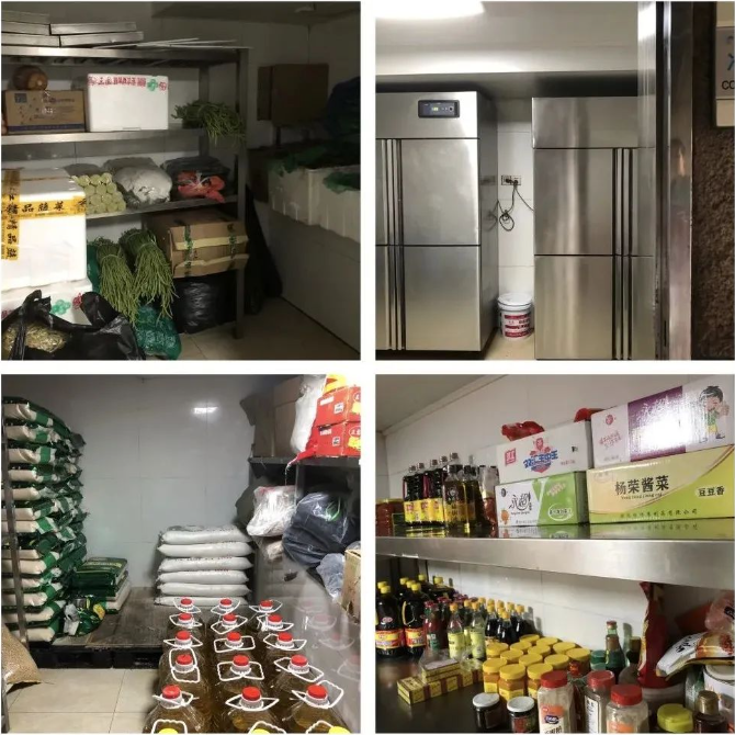 其中(zhōng)采購入庫的魚、肉等易腐爛變質的葷菜必須分區妥善保存在冰箱中,新(xīn)鮮蔬菜與米、麵等(děng)主食原(yuán)料分開存放;除了常規的食材分開存放外,食用油、大米、麵粉、麵(miàn)條、調味料等食(shí)材消耗品,進行分類、分架、隔牆、離地存放。