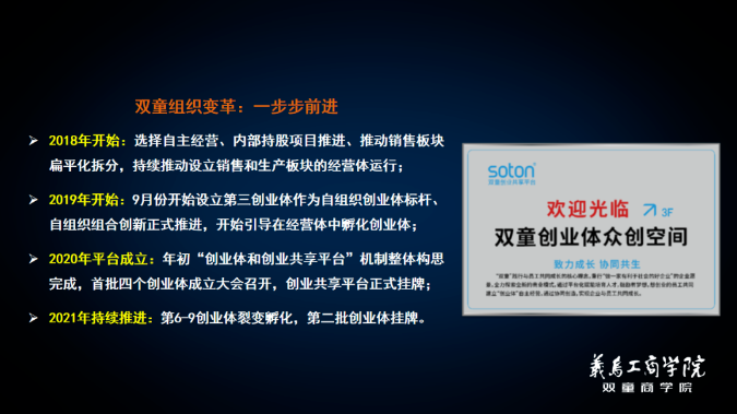 2018年,在泰山管理學院榮譽院長馬方及其團隊的幫助下,“雙(shuāng)童”完成了第一期股權激勵。在學(xué)習自主經營、阿米巴變革機製的基礎上,“.17c嫩嫩草色视频”又組合(hé)出最適合企業發展的自組織創業裂變模式。