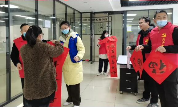 為了讓更多人感受到這(zhè)樣的溫暖,雙(shuāng)童黨支部書記張國俊帶領支部黨員一(yī)起送對聯上(shàng)門,給在崗位辛勤工作的員工送上新春祝福。“手寫的春(chūn)聯真的很(hěn)好!這樣的春聯既好看(kàn)又喜慶,是傳統的年味兒。祝願大家過(guò)個好年!”領到春聯的職工吳(wú)哥欣喜不已,臉上洋溢著幸福的(de)笑容。