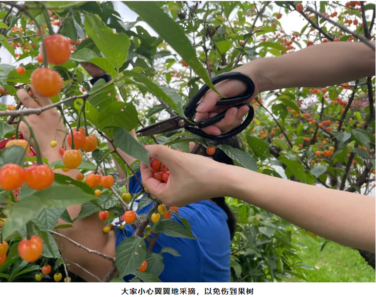 在“雙(shuāng)童”,水(shuǐ)果都(dōu)是員工共享,等到櫻(yīng)桃成熟了,甜蜜的(de)果(guǒ)實就要大家(jiā)一起(qǐ)分享。挑選一(yī)個(gè)晴朗的日子,細(xì)心地把果實采摘下來,不僅是品嚐美味,也增進(jìn)了同事間的情誼。