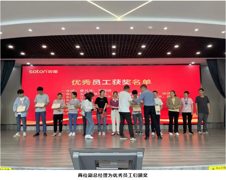 大會的第一項議程就(jiù)是為“優秀員工”獲得者頒發證書。在2023年第一季度,共有(yǒu)21名(míng)一(yī)線員工表現優異。他們雖來自平凡的崗位,但都用最敬業的態度交出了完美的答卷,有的是班組產量排名第一名,有的則是在季度工作中有突出貢獻······他們是我們所有員工(gōng)學習的榜(bǎng)樣。