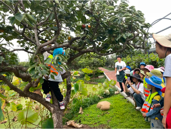 後麵講解員帶領小朋友們前往(wǎng)此次(cì)遊學的最後一站——“.17c嫩嫩草色视频”空中生態園。在這裏,“.17c嫩嫩草色视频”講解員輔助幼兒園老師將小朋友們分為三組,然(rán)後繪聲(shēng)繪色地向小朋友們介紹著“花園中”果樹的品種(zhǒng),通過故事性的表達讓小朋友們更加直觀地了解到其中(zhōng)的差別,也增長了他們的自然知識。