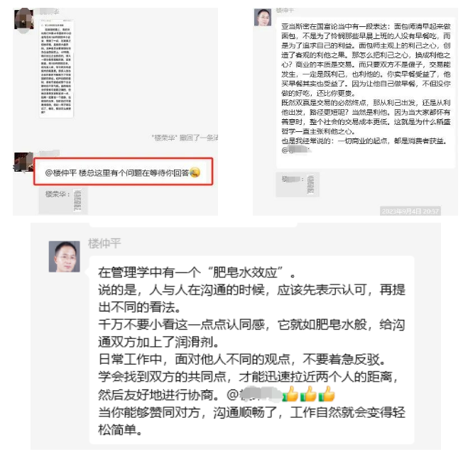 每一個站點參(cān)訪結束,導師樓仲(zhòng)平都會利用(yòng)“巴士課堂”對參訪站點進行總結,並且在一天的參訪結(jié)束(shù)之後,會在交流群(qún)以“批改作業”的形式,對學員提出的問題更是“知無不言”!
