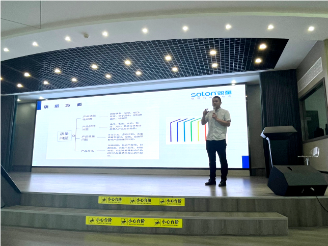 當頒獎(jiǎng)音(yīn)樂響起(qǐ),現場氛圍瞬間被點燃,在陣陣掌聲中,“優秀員工(gōng)”獲得者走向舞台中央,在聚光燈下,總經理李二橋依次為他們頒發榮譽證書(shū)。相信這一刻,對每一位“優秀員工”來說都意(yì)義非凡,對台下的全體員工也是莫大的鼓舞!