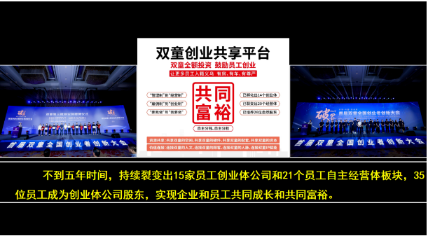 樓仲平(píng)在不留餘(yú)力地為員工打造好(hǎo)的環(huán)境之外,還運用組織(zhī)機(jī)製的創新(xīn),鼓勵員工在內部創業。不到五年時(shí)間,已持續裂(liè)變出15家員工創業體公司和21個員工自主經營體版塊,35位員(yuán)工成為創業體公司股東,推動企業(yè)和員工共同成長和共同富裕。
