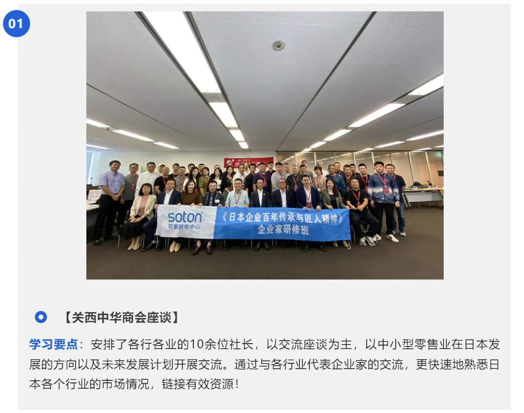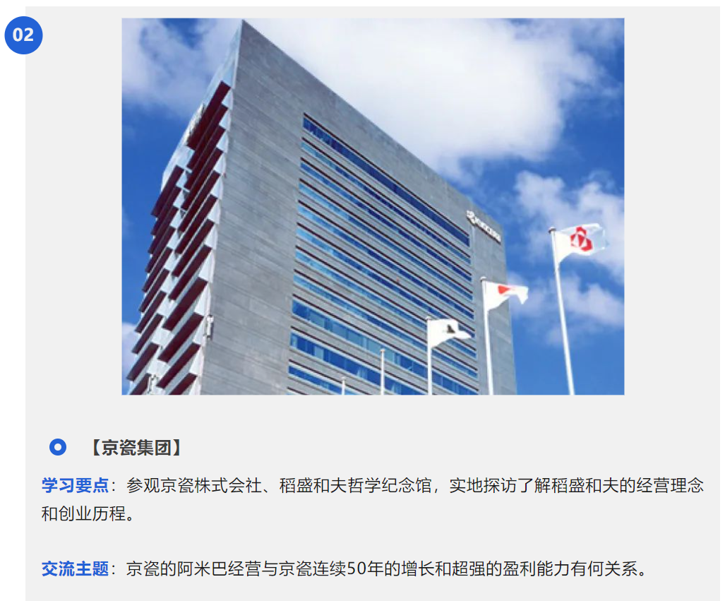 整個6天(tiān)5晚的企業(yè)家研修班(bān)過程中,既有(yǒu)日本知(zhī)名企(qǐ)業參訪,也有休閑放鬆的景區遊覽。