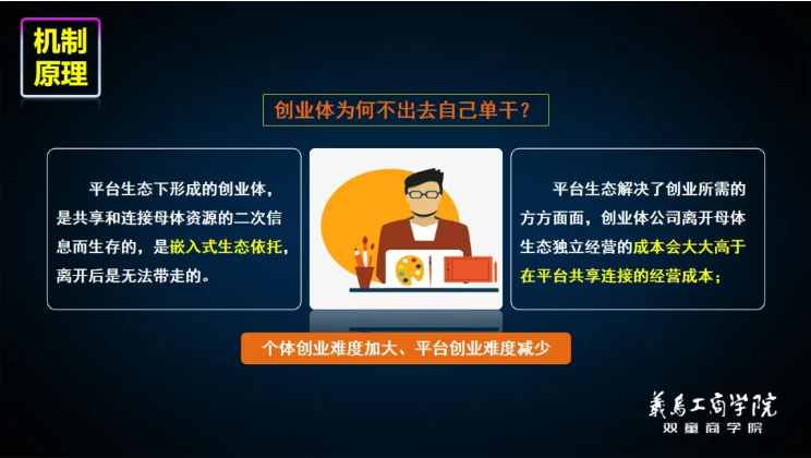 這不全是靠情感連接,因為通(tōng)過裂變機製(zhì),平台生態會幫創業體解決(jué)了創業所需的方方麵麵,從而大大減少運營成本,優秀的人才(cái)自然不會脫離平台,自立門(mén)戶,所以對學員企業而(ér)言,通過(guò)學習裂變機製,才能更科學的留人機製!