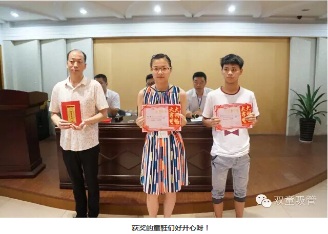 呀!吸管妞也上台頒獎啦!原來是給第一屆吸(xī)管創新大賽的獲獎者頒獎呢!榮譽證書、獎金可是一樣(yàng)都(dōu)不落呀!