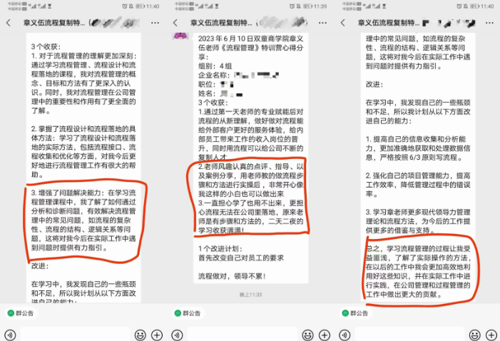 為了幫助(zhù)學員對課(kè)程知識的理解、轉化與應用,課程結束後,章老師仍然會在群裏為企業學員答疑解惑,不少同學也分享自己的所學所感,共同維護學習場域!