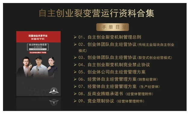 3、交付自(zì)主創業裂變模式的各項規則、文本、合同等書麵資料