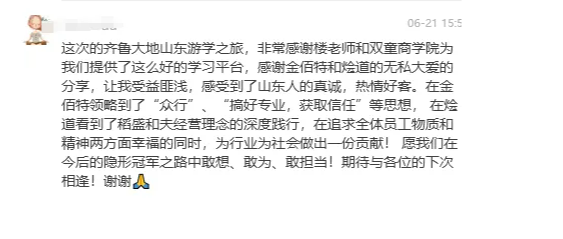 “弟子班”永不畢業,持續(xù)成(chéng)長!6月20-21日,隱形冠軍樓仲平思享薈舉行山東校友會(huì)研學專場,1-5期“弟子班”中的40多位同學一同成行。