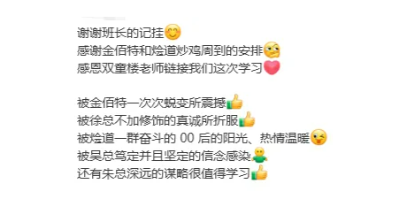創始人朱濤加(jiā)入樓老師(shī)的“弟子班”後,她跟隨旁聽了開學模塊的《創業者成長》課程(chéng),沒想到一下子打開了她(tā)的思維,決定嚐試輪值(zhí)生產一把手,找到未來成長的新(xīn)定位。幾個月後,經過深(shēn)入(rù)現場,她(tā)敏銳地發現管理問(wèn)題,進而提出了眾多有效的提升(shēng)優化方式。