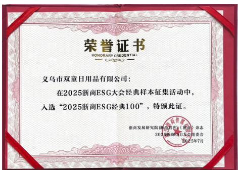 7月30日,2025浙商ESG大會上隆重(chóng)發布“2025浙商ESG經典100”,其中,雙(shuāng)童再次憑借在(zài)ESG領域取(qǔ)得的卓越表現成功入圍!