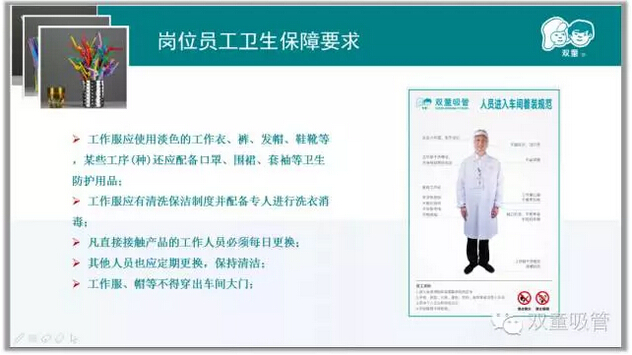 生產吸管對環境(jìng)有著很高的要求,因此對(duì)崗位員工的衛生要(yào)求也更加嚴謹。比如進入車間(jiān)的著裝要求,員工洗手消毒的流程、上下班前對崗位進行自檢等方麵都(dōu)有著明確的規定。隻有好的環境才能生產出更好的產品。