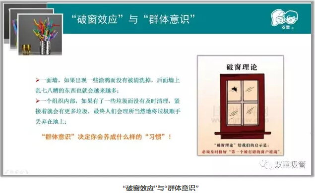 首先,“雙(shuāng)童”樓仲平分(fèn)享(xiǎng)了“破窗效應”,一(yī)個組織內部,如果有了一些垃圾而沒有及時清理,緊接著就會有更多垃圾(jī),最終(zhōng)人們會理所當然地(dì)將垃圾順手丟棄在地上。所以群體(tǐ)意識決定了你會養成什麽樣的“習慣”,而你的習慣也(yě)會(huì)影響著整個集體。