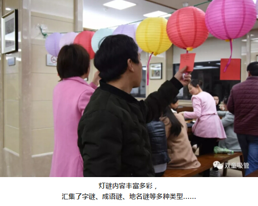 猜燈謎不僅有(yǒu)悠久的曆史,也有著深厚的文化底蘊,燈謎藝術融知識性和趣味性於一(yī)體,倍受人們喜愛!餐廳(tīng)內一排排的燈(dēng)籠烘托出了濃鬱的節日氛圍,一條條彩紙製成的謎語給(gěi)節(jiē)日點綴的(de)五彩繽紛。我們(men)的燈謎競猜大(dà)會(huì)也在(zài)濃厚的(de)節日氛圍中拉開(kāi)帷幕……