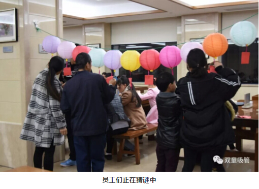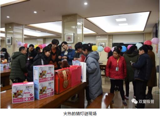 前來猜謎的員工們三五成群,時而交流談論,時而冥思苦(kǔ)想,猜中者喜得獎(jiǎng)品,興趣倍增;猜錯者不氣不餒,再接再厲。