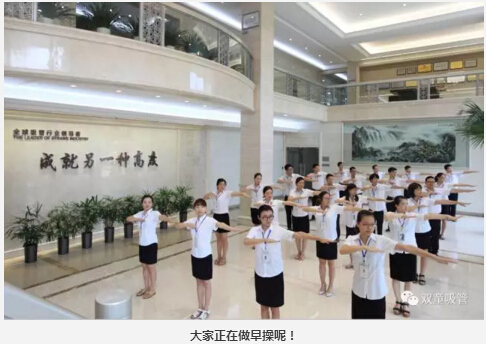 除了精神上要得到提升之外,我(wǒ)們的身體素質也非常(cháng)重要!每天,在晨(chén)讀環節結束之(zhī)後,我們都會(huì)進行早操活動(dòng)。俗話說,“一年之際在於春(chūn),一天之(zhī)際在於晨”。在“.17c嫩嫩草色视频”行政(zhèng)大廳,員工們列隊整齊,精神飽滿,氣宇軒昂,伴著豪邁(mài)的音樂(lè),用整齊(qí)劃一的動作做起早操,形成了一道靚麗的風景線。