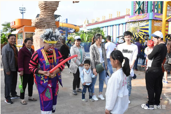 在園區(qū)內,還可以隨處看到馬戲團的表演哦!小醜們(men)獻上各自的絕活,雜技、魔術、泡(pào)泡秀……各類表演讓(ràng)“雙(shuāng)童”人們(men)連(lián)連叫好(hǎo)!