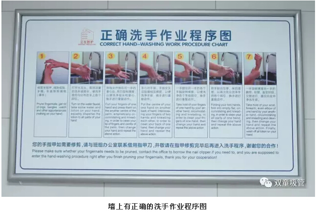 除此之外,功能(néng)區內還配(pèi)置(zhì)了高端的烘(hōng)幹器、消毒器、感應水龍頭以及酒精消(xiāo)毒器等硬件,並配置了許多精心定製的標(biāo)示牌,提示著員(yuán)工規範使用!這樣(yàng)的配備(bèi)也為員工的衛生要求做了硬件的保障,確(què)保員工工作環境(jìng)的極致衛生!