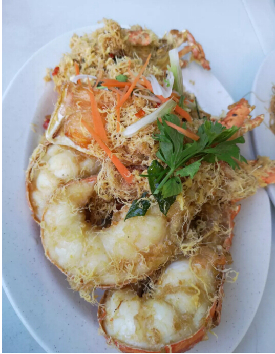 從軍艦島回到鎮上,我們就回民宿(xiǔ)抓緊時間洗漱,去街上買了(le)大(dà)龍蝦(xiā)、皮皮蝦、海蟹,拿到也是很有名的天旺海(hǎi)鮮樓加工製作。買海鮮的過程參照昨天提到的,七八位賣海鮮的當地(dì)人拿著各種各(gè)樣的海鮮圍著我們,簡直是來不及應對。再加上要趕飛機,所(suǒ)以我們的海鮮餐沒有狠砍價,最後我們的海鮮大餐(cān)創了(le)我們在馬來的最奢侈一餐——561元馬幣,相當於4個人吃了(le)900塊錢人民幣,心(xīn)疼荷包三(sān)秒(miǎo)鍾。不過,天(tiān)旺加工的味道也(yě)很(hěn)棒了,我們四(sì)個人吃不完,還打包回亞庇了呢。