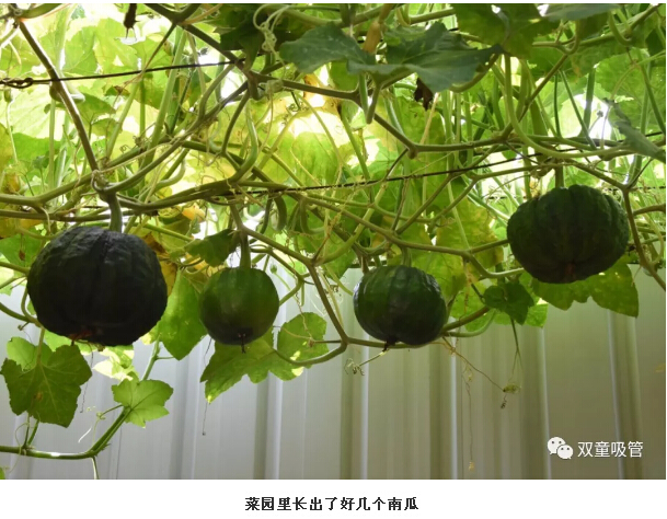 賞完了美麗的向日葵花,再跟著吸管妞來看看(kàn)豐收的菜園子。瞧!一根根絲瓜掛在茂密的藤架上,間或有幾朵小黃花點綴,煞是好看!一旁的南瓜也迫不及待的生長一個個(gè)“小腦袋(dài)”掛在枝葉上,別提多誘人(rén)啦(lā)!